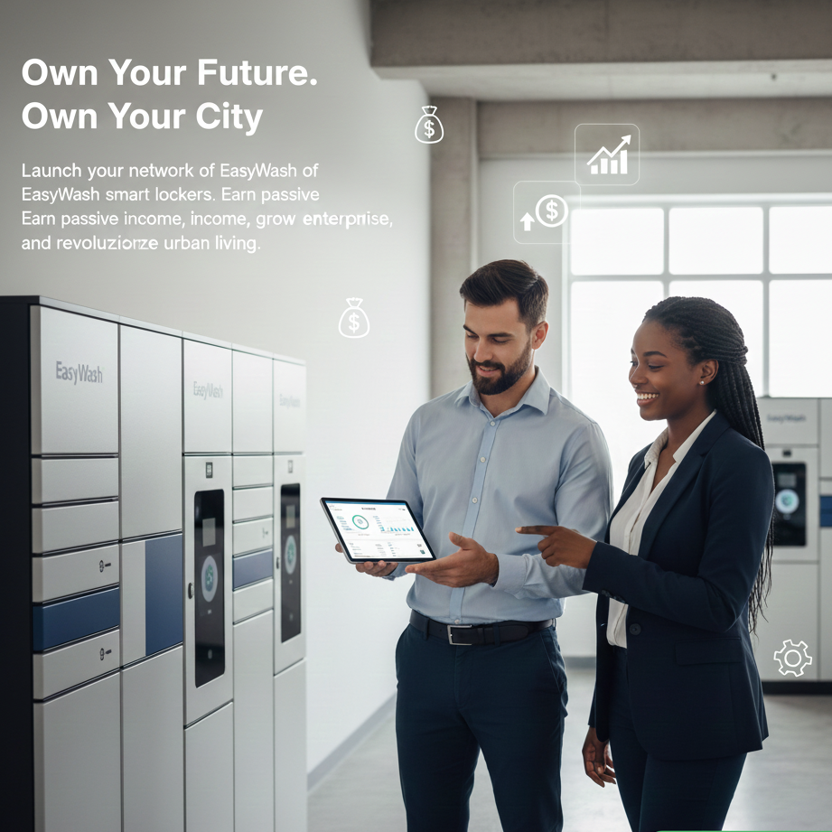 EasyWash is transforming the laundry industry by empowering entrepreneurs to operate smart lockers throughout the city. Our automated system allows you to earn an average of $120 per day per locker with a nearly passive business model.